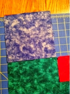 Since there were two layers of the red, I cut the four required squares as I cut two blue and two green squares.